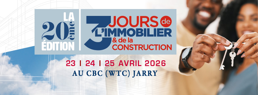 Les 3 Jours de l’Immobilier et de la Construction du 23 au 25 avril 2026. Rendez-vous au CBC (ex CWTC) à Jarry.